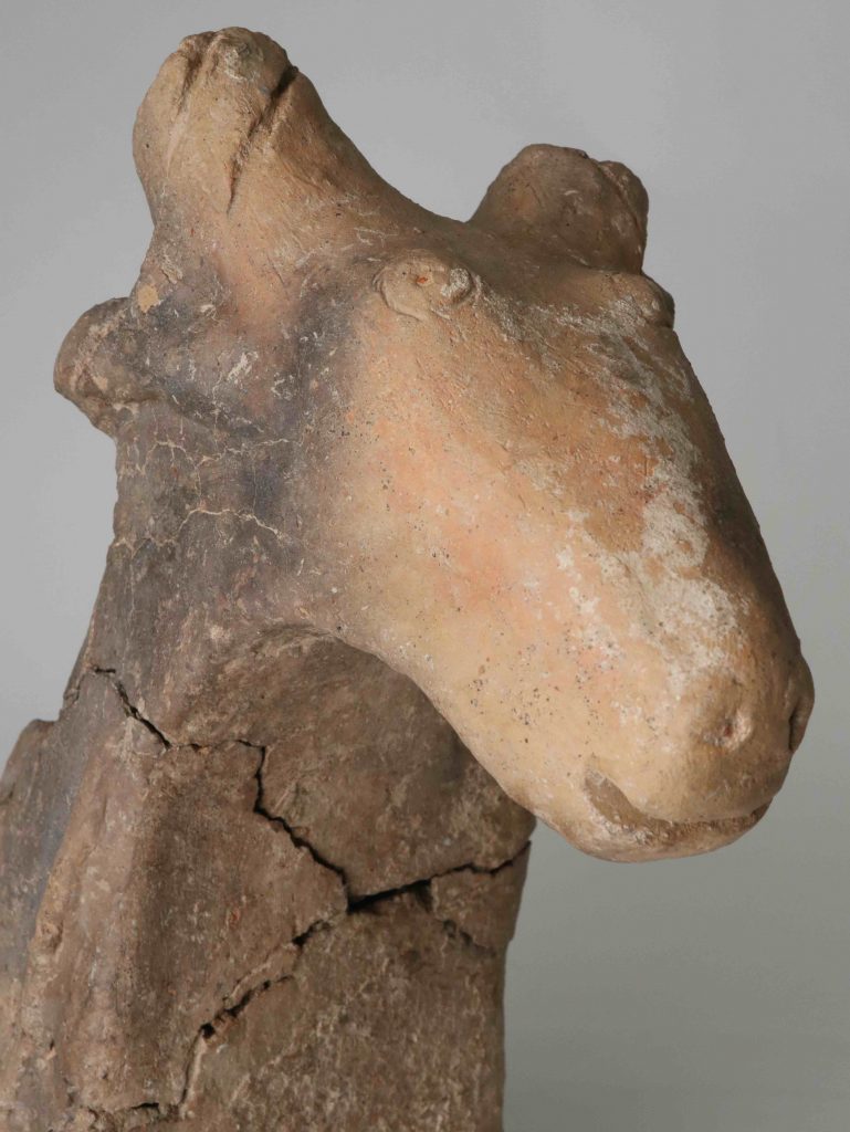 Alari in terracotta con terminazione a protome d’ariete recuperati durante lo scavo archeologico eseguito a Padova in via Zabarella nel 2019, prima e dopo il restauro. VI-V sec. a.C (© Foto credits: Archivio Sabap Pd-Tv-Bl).