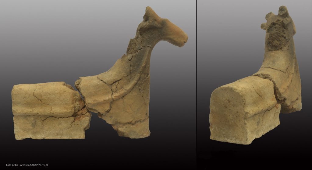 Dallo scavo tra via degli Zabarella e via San Biagio a Padova, il particolare rinvenimento degli alari in terracotta, alcuni dei quali restaurati nel laboratorio della Soprintendenza