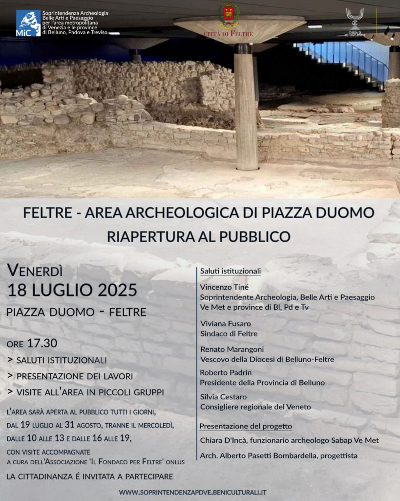 Il 18 luglio riapre al pubblico l’area archeologica di Piazza Duomo a Feltre con un evento aperto a tutti gli interessati e visite all’area